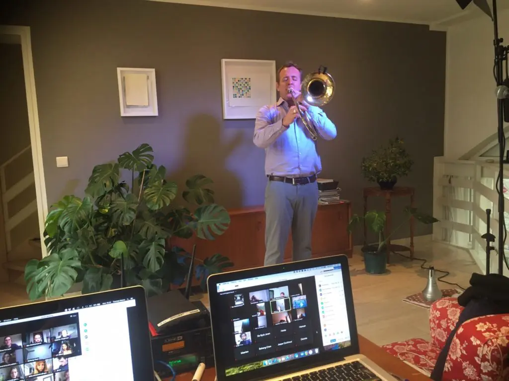 Voor het eerst organiseerde Nadar Ensemble een virtueel concert met een uitvoering van FITTINGinSIDE voor trombone, walk en conference call door Stefan Prins.
